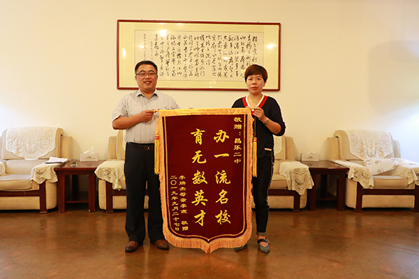 家长感恩送锦旗 二中教育暖人心
